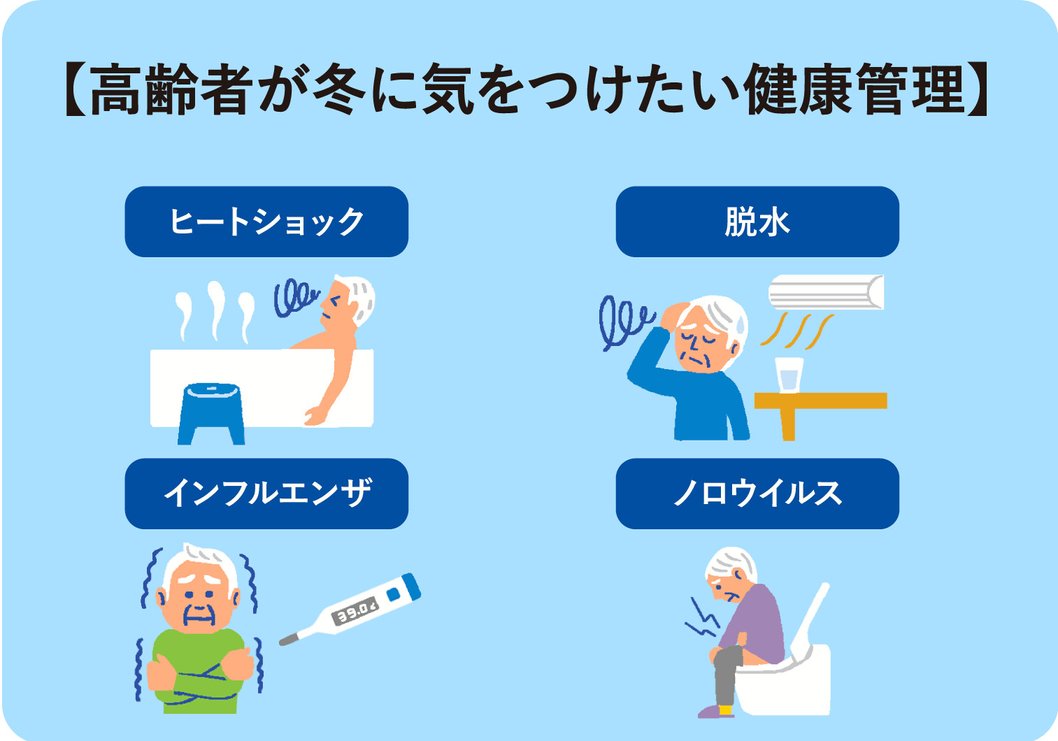 冬場は、インフルエンザ、新型コロナウイルス、ノロウイルスなどの感染症が流行する季節でもあります。これらの病原体は、特に高齢者にとっては非常に危険です。高齢者の体は、若い人々と比べて免疫力が低下しており、感染症に罹患しやすく、また病状が重篤化しやすい傾向にあります。