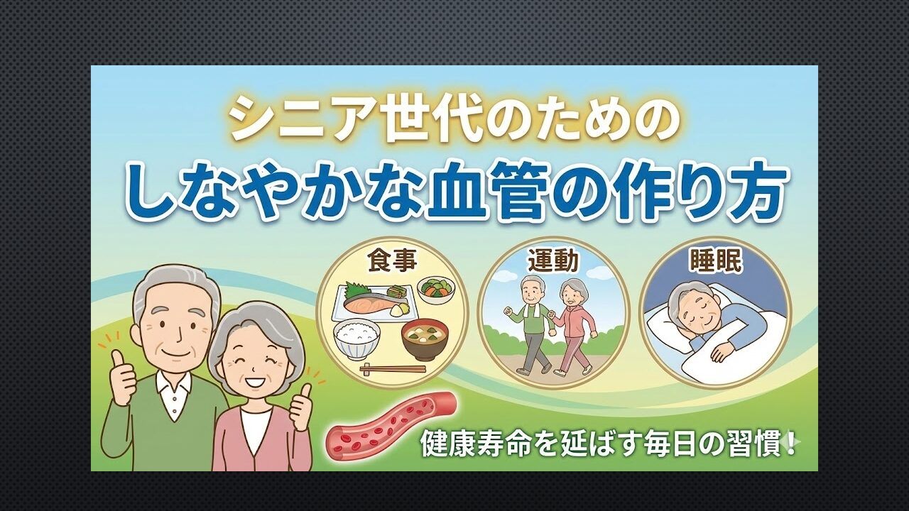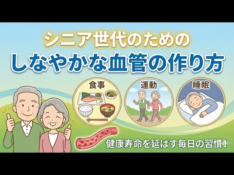 この動画では、シニア世代の健康寿命を左右する血管の若返りとメンテナンスについて解説しています。血管の老化は自覚症状のないまま動脈硬化やゴースト血管へと進行しますが、日々の習慣を改善することで何歳からでも再生が可能です。具体的な対策として、減...