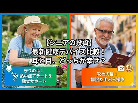 この動画では、シニア世代に向けた最新の健康投資として、腕時計型やリング型を超えた次世代デバイスの活用法を解説しています。スマートイヤホンは、心拍数や体温の計測に加え、聴力サポートや転倒防止に役立つ「守り」の道具です。一方、スマートグラスは、...