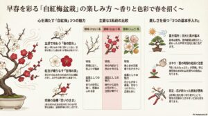 本記事では、古くから日本人に愛されてきた「白紅梅盆栽」の魅力と、一鉢を長く楽しむための育て方のコツを、初心者にもわかりやすく解説します。