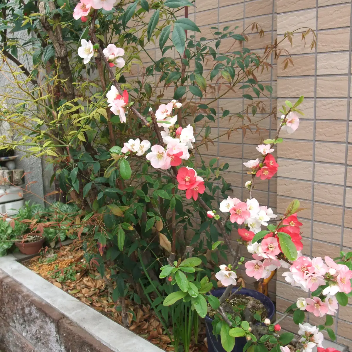 ボケは、勢いよく長く伸びた枝(徒長枝)には花がつきにくく、「短く充実した枝」に花芽をつける性質があります。そのため、長く伸びた枝は2〜3芽残して切り詰め、コンパクトに保つことが花付きを良くする秘訣です。