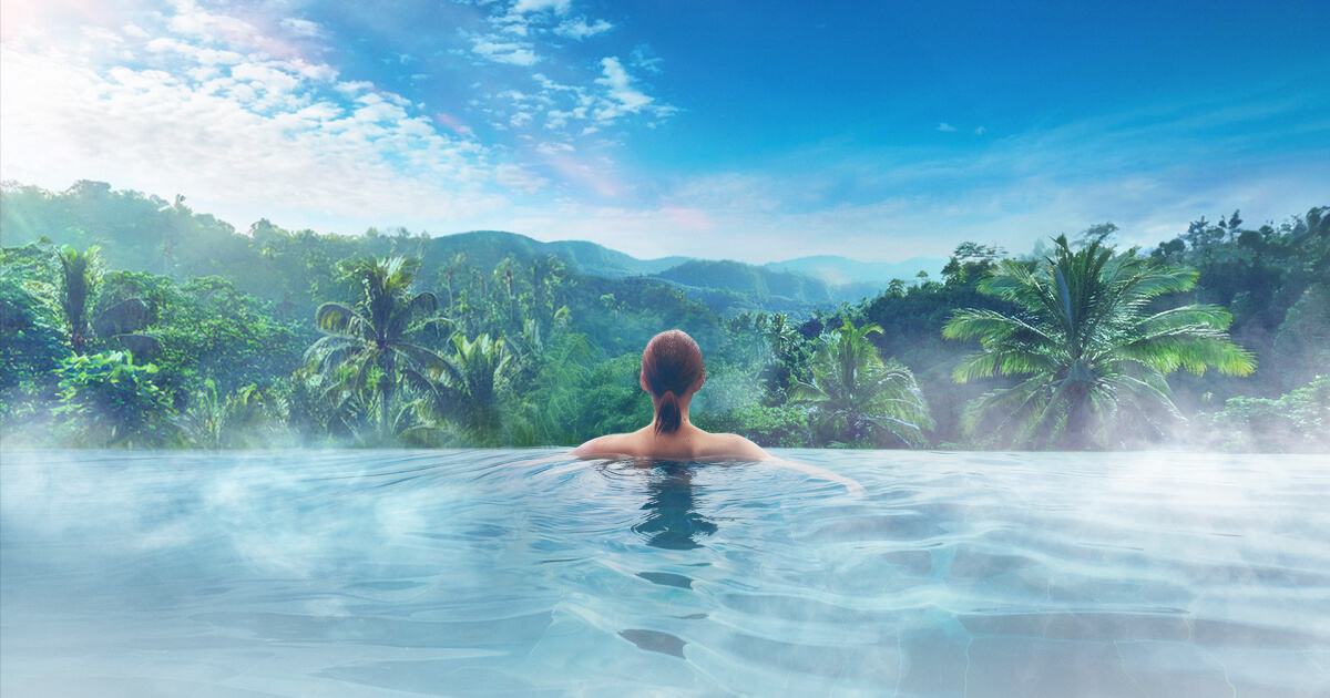 濃緑と青空の絶景を望むインフィニティ風呂で、世界自然遺産「やんばる」の山々と一体となれる贅沢なひとときをお過ごしいただけます。屋外にはカルシウム風呂やサウナを、屋内には洞窟風呂や美肌効果のある天然温泉を完備し、多彩な癒しの時間をご提供します。