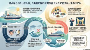 前編では、株主優待を活用して「にっぽん丸」の旅を予約するまでの流れを軸に、船内で味わった美食の魅力、そして初日から直面した船酔いという“現実”まで、読者の期待感を高めつつ描いてきました。