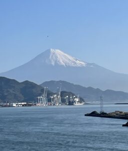 清水港から望む富士山は、絵に描いたように端正な姿で、遠くにありながら圧倒的な存在感を放っていました。波の上で揺れに耐え、寝不足と船酔いで消耗していた心身が、その一枚の景色によって静かに整っていくようでした。