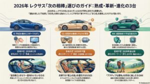今回は、初めてのレクサス車検を迎え、次回車検までの乗り換えを検討しているシニア世代の皆様へ、参考情報をお届けしました。2026年のレクサスラインナップは、ISの「熟成」、ESの「革新」、NXの「進化」——それぞれ異なる魅力を持つ三つのアプローチで私たちを迎えてくれます。