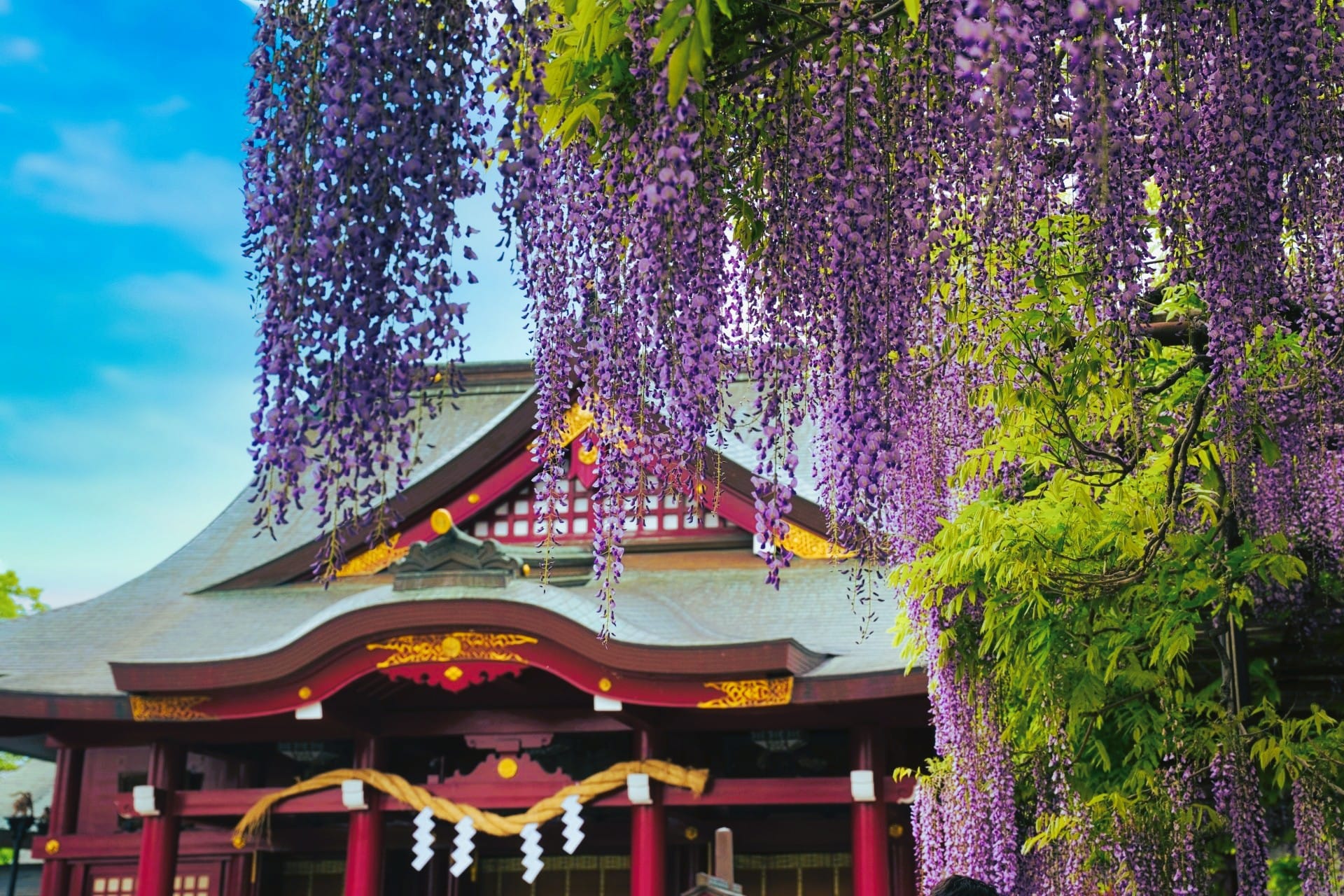 つつじを満喫した後は、日本三大稲荷のひとつである笠間稲荷神社へ足を延ばしてみてください。境内には、樹齢400年にも及ぶ茨城県指定天然記念物の「八重の藤」があります。ぶどうの実のように花が密集して咲く珍しい品種で、つつじと同じ4月下旬から5月上旬に見頃を迎えます。