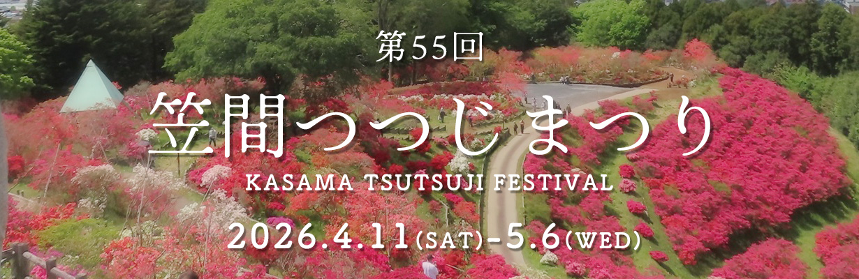 2026年「第55回 笠間つつじまつり」は4月11日から5月6日まで開催され、開園時間は8時から20時です。夕方以降は和傘と竹筒のイルミネーションが彩り、日没時には西側の山々を望めるため、昼と夜で異なる表情を見比べるのもおすすめです。